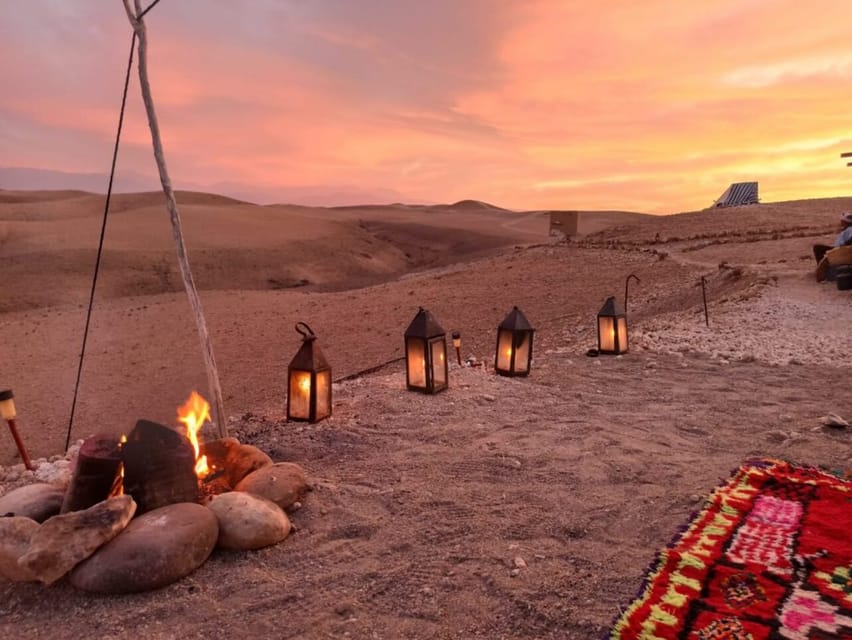 Capture striking photos of the sweeping countryside and the majestic High Atlas Mountains in the distance. Enjoy a peaceful camel ride at sunset or unwind with a cup of traditional Moroccan mint tea as evening falls over the desert. Savor a delicious, freshly prepared lunch at the camp before night settles in. As stars illuminate the desert, indulge in a romantic dinner and taste the rich flavors of authentic Moroccan cuisine. This experience stands out among all Morocco Tour Companies for its charm, intimacy, and attention to detail.