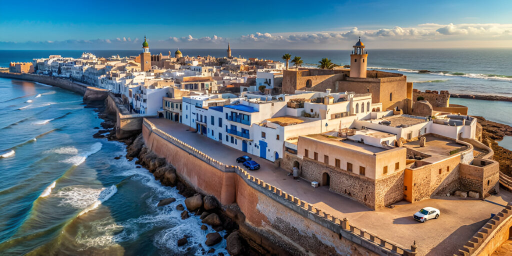 Your windsurfing adventure begins early in the morning with a convenient pick-up from your accommodation in Marrakech. As you leave the city behind, you’ll enjoy a scenic drive through small Berber villages and vast Argan tree landscapes on the way to the Atlantic coast. After about two and a half hours, you’ll arrive in the charming seaside town of Essaouira, where the refreshing ocean breeze sets the tone for an exciting day.